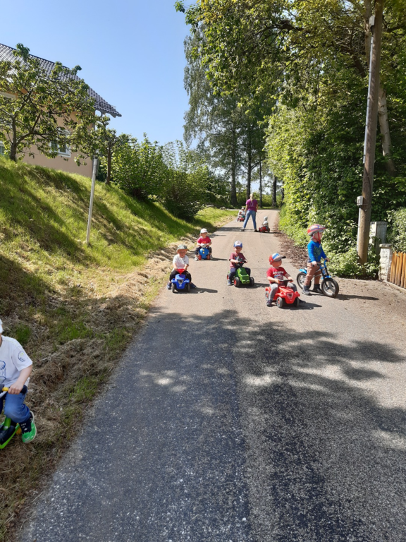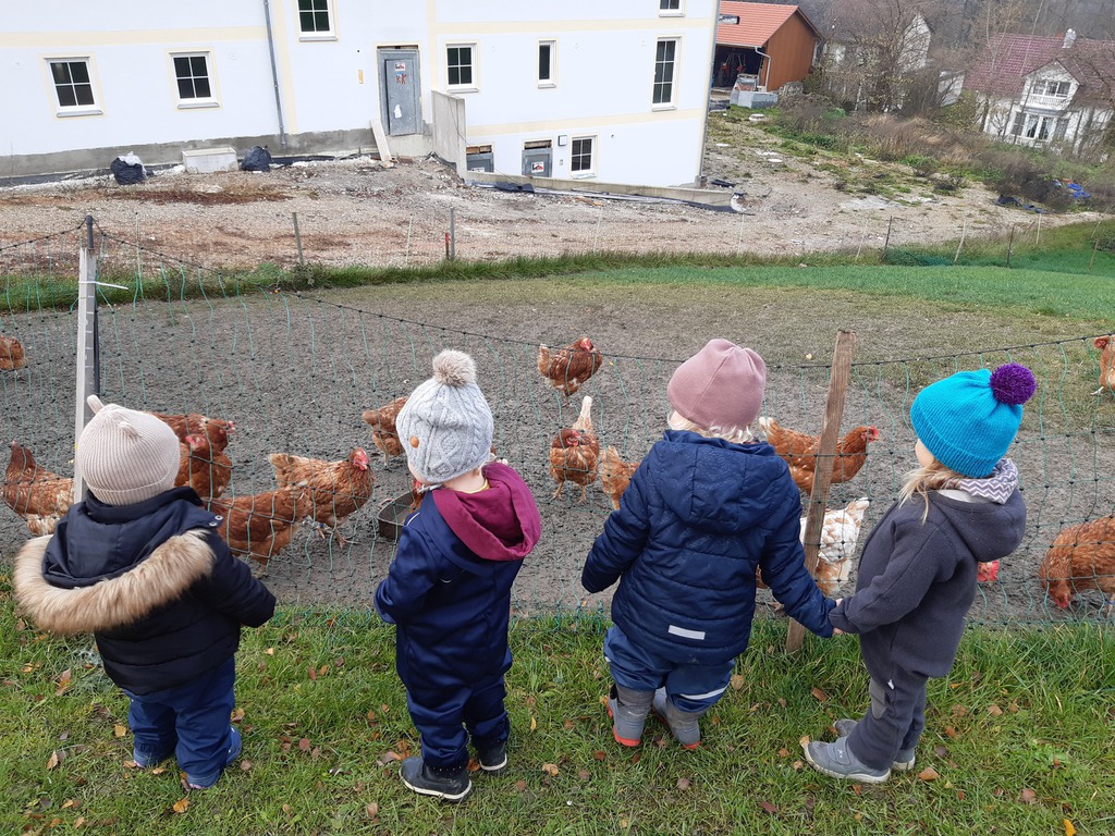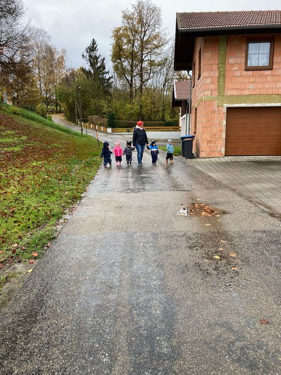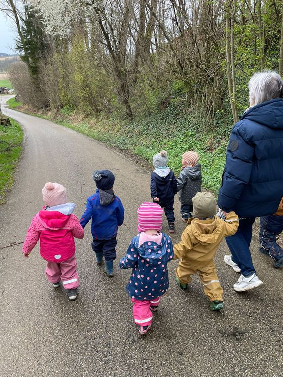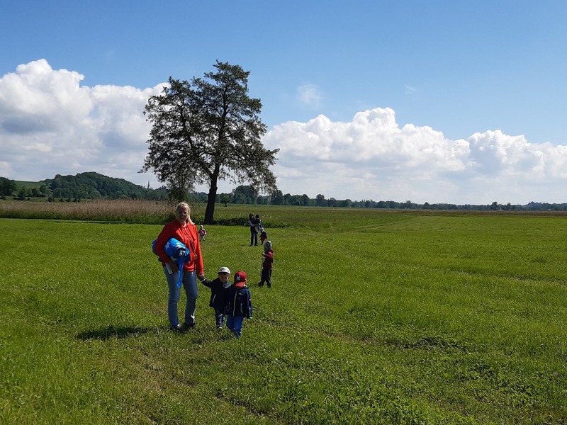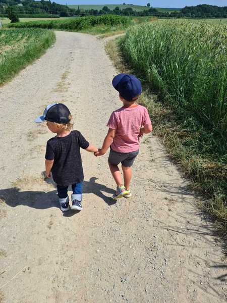 Ein Spaziergang durch den Ort ist immer ein Erlebnis. Wir besuchen die Hühner auf dem Bauerhof, dürfen auch mal auf dem Traktor probesitzen oder auf den Feldwegen Blumenpflücken oder einfach Laufen.